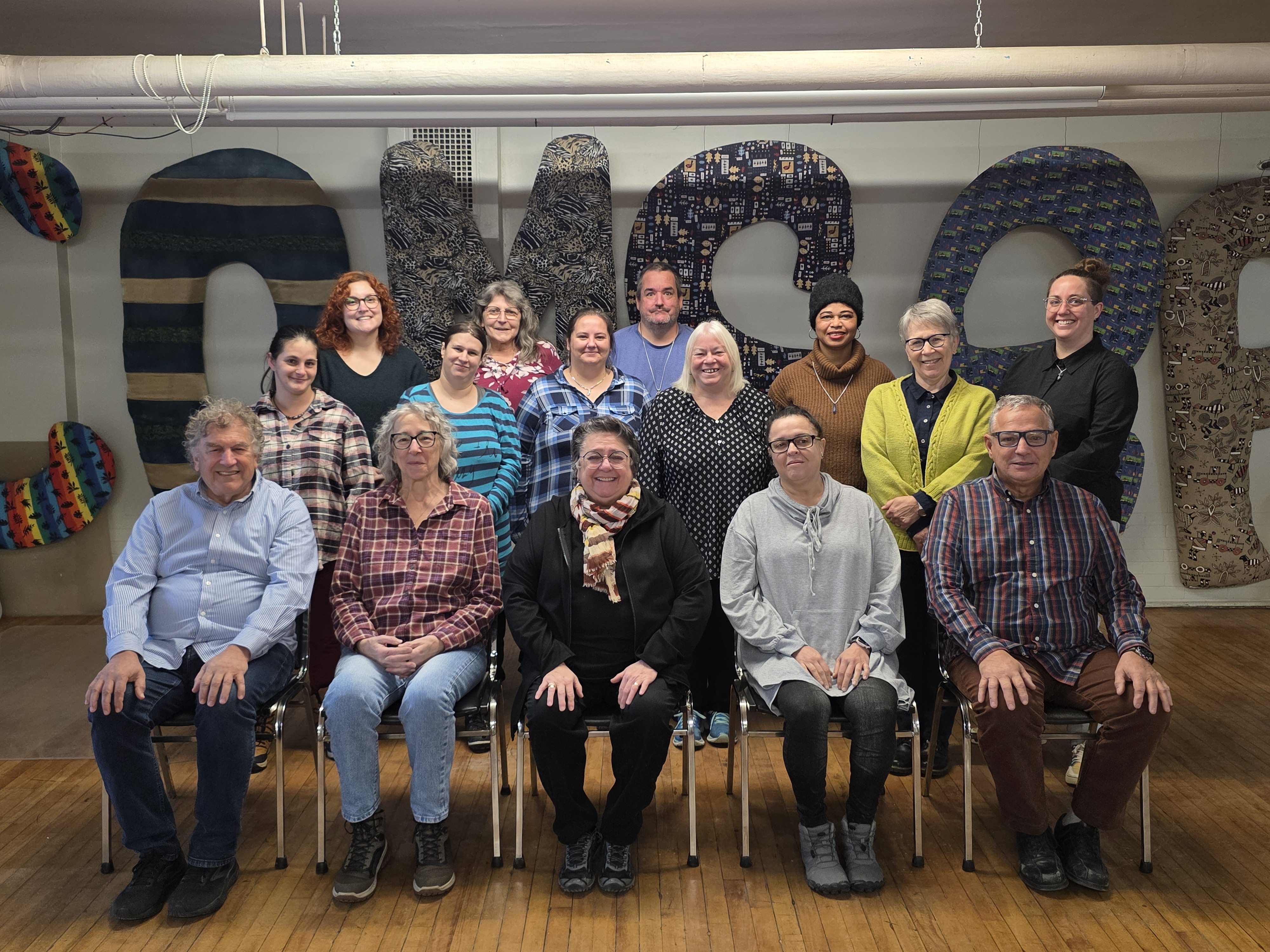 3ème rangée : Véronique Dumulong (équipe de travail), Line Chiasson (Alphabétisation), Jean-Simon Desjardins (Alphabétisation), Sakina Kilima (Personnes immigrantes), Vicky Gélinas (équipe de travail).